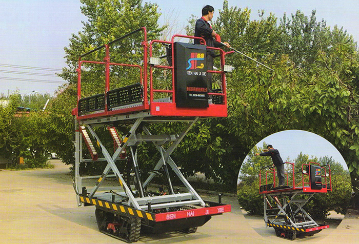 濰坊森海機械制造有限公司自主研發(fā)的佐佐木牌3GPZ-150D型果園升降平臺,是現(xiàn)代化果園果園修剪、果實采摘、運輸?shù)软椬鳂I(yè)的理想機具。該作業(yè)升降平臺采用電動自走式無級變速升降平臺,行走及轉(zhuǎn)向均為電動控制,操作方便靈活;選用先進的液壓和電器等關(guān)鍵部位,性能穩(wěn)定,作業(yè)安全可靠。